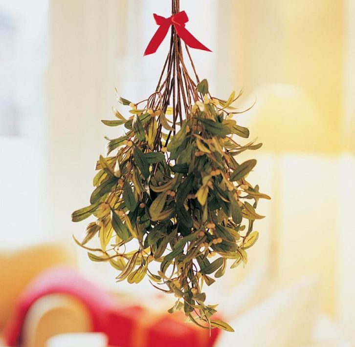 Обычай целоваться под омелой принадлежит Англичанам. Считается, что им они обязаны друидам, которые имели полноценный обряд по сбору и раздаче драгоценных магических ветвей растения.